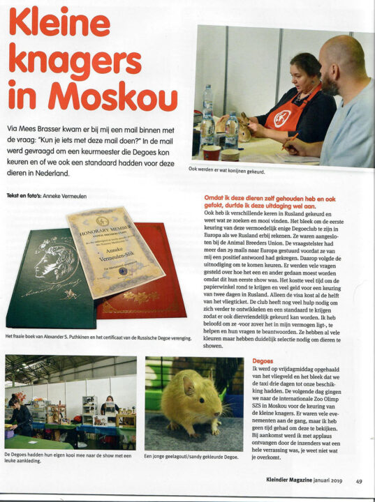- Публикации о работе экспертов и питомника в голландском журнале Kleindier Magazine (2019)