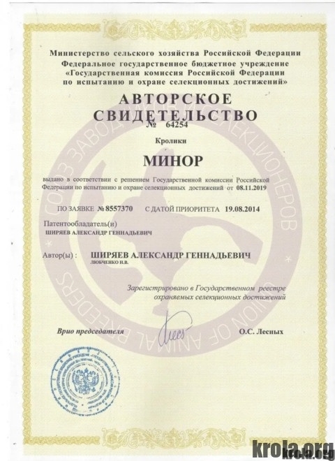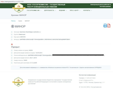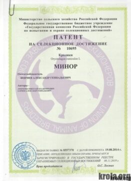 - Авторы самой маленькой отечественной породы кроликов минор зарегистрированной в Минсельхозе РФ (2013-2019)