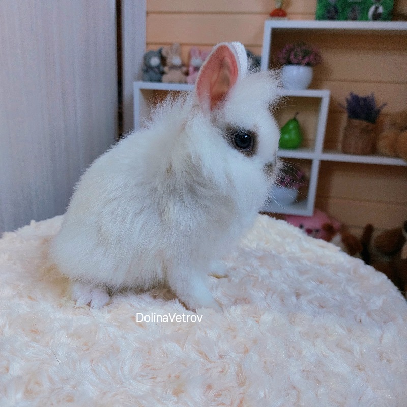 Декоративный карликовый кролик вислоухий, окрас тюрингенский сплит.