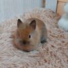 Самочка, карликовый вислоухий кролик, окрас сплит тюрингенский, 2 мес. Ярко-голубые глаза, рыжее тело, белые отметины на мордочке и лапах. Брид класс. Хороший темперамент, спокойная, в меру любопытная. Родители вес 1,7-1,8 кг.