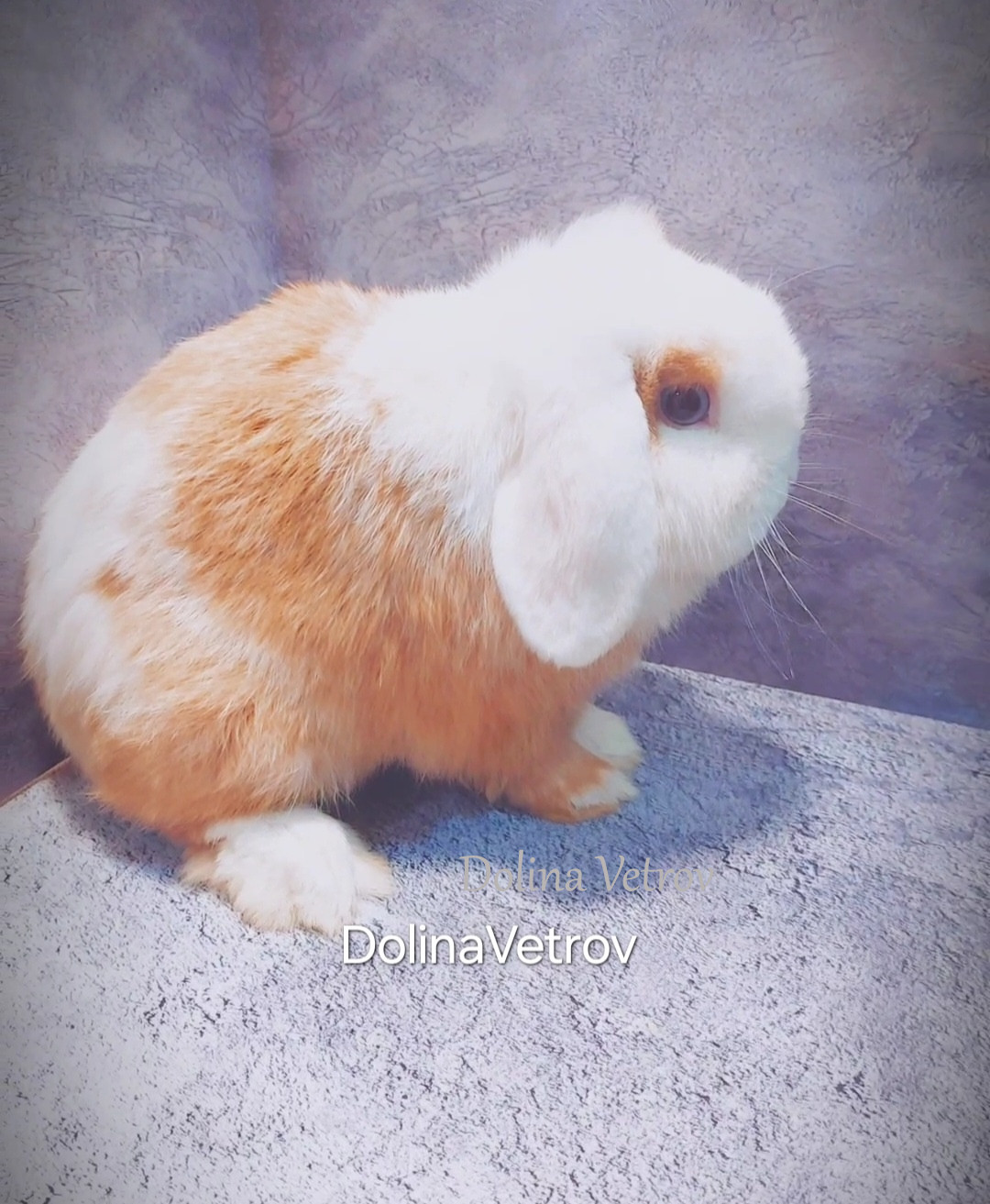 Самочка, карликовый вислоухий кролик, окрас сплит тюрингенский, 2 мес. Ярко-голубые глаза, рыжее тело, белые отметины на мордочке и лапах. Брид класс. Хороший темперамент, спокойная, в меру любопытная. Родители вес 1,7-1,8 кг. На последних фото.